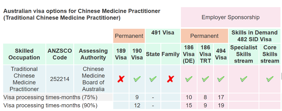 - 职业评估机构为Chinese Medicine Board of Australia(CMBA)
