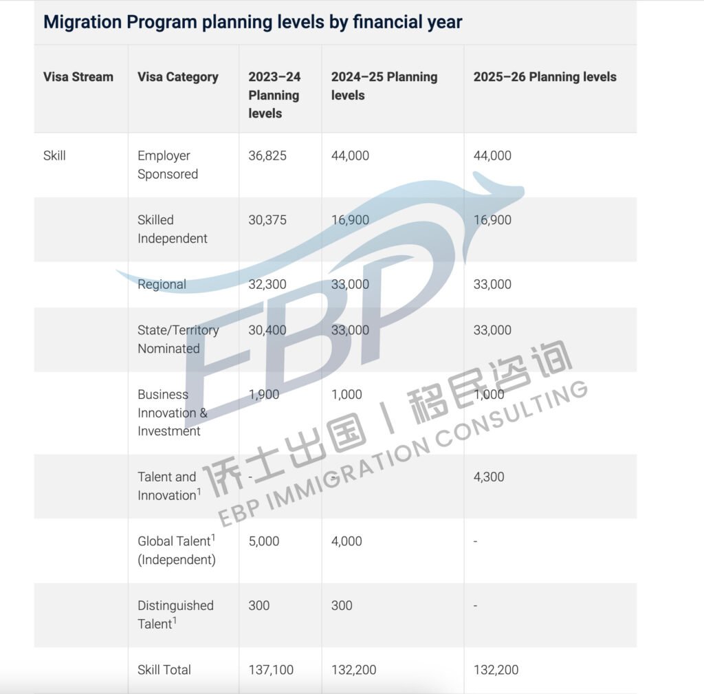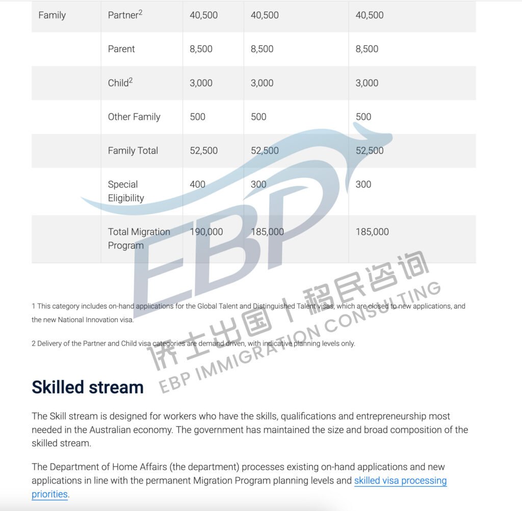 2025–26 财年的 永久移民计划(Permanent Migration Program)总配额被正式宣布为:185,000 个末位签证名额(与上一财年一致)
