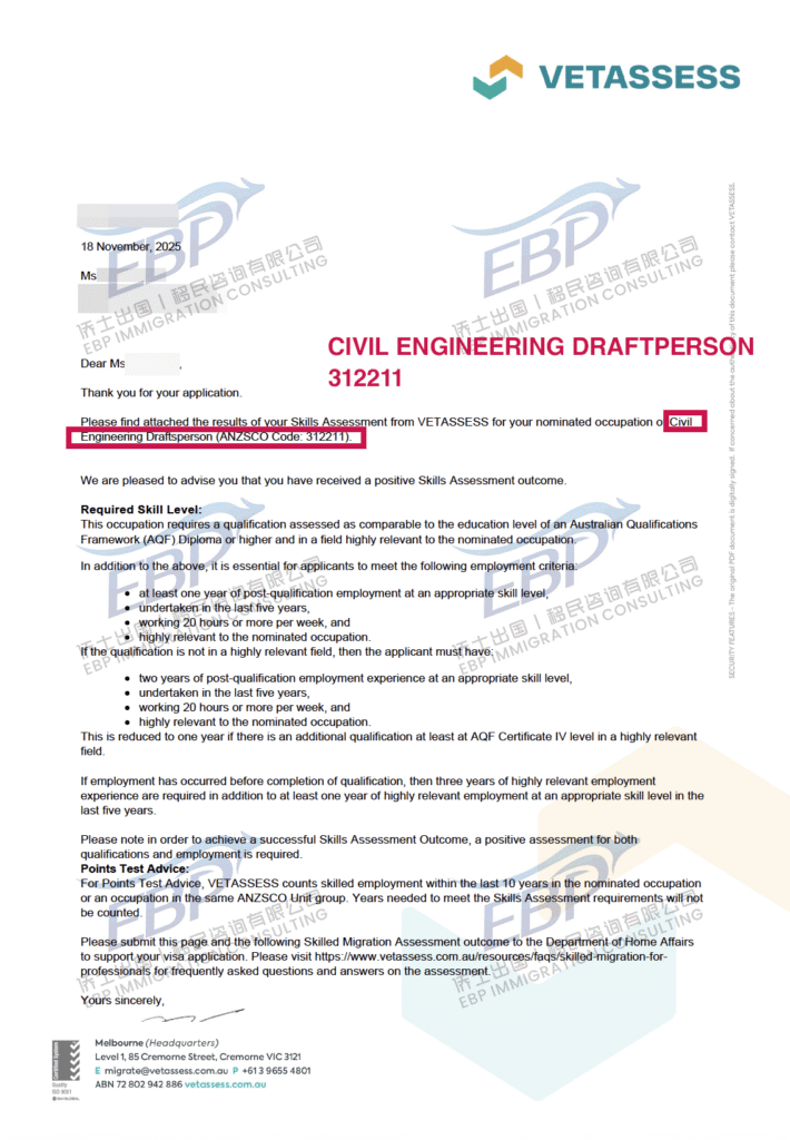 Many people ask during consultation: “Can I pass skills assessment without a relevant qualification?” “My English is not good… will I be rejected straight away?”Today’s client is the perfect answer.